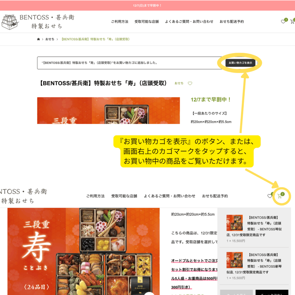 3. 数量を確認し、「お買い物かごに追加」をクリック(タップ)します。