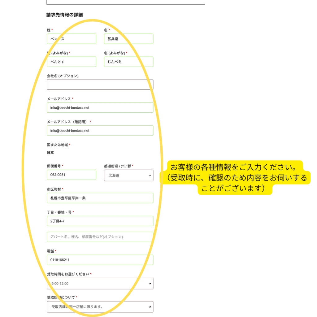 1. ご注文者様のお名前・ご住所・電話番号・メールアドレス等を入力します。