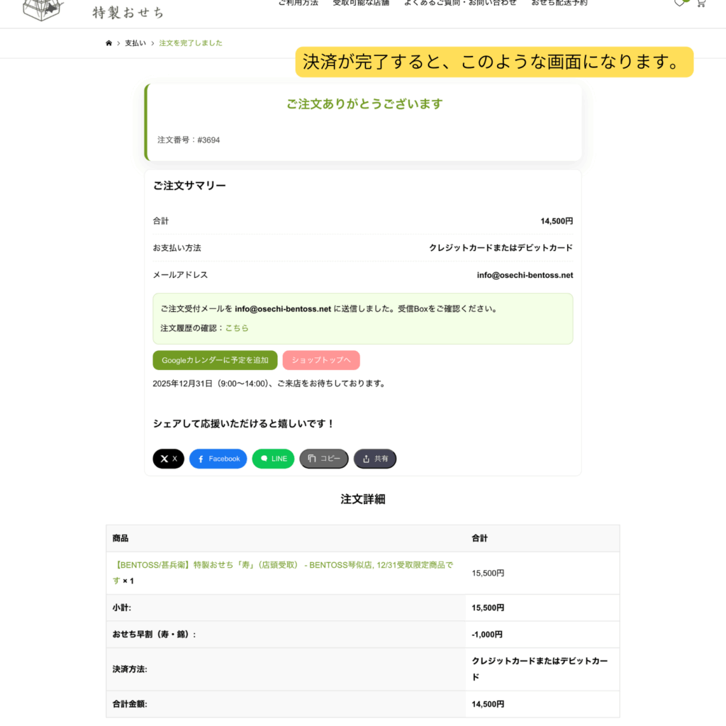 注文から決済完了・確認メールの受信までの流れを、パソコンからご注文いただく際のスクリーンショット付きでご案内します。