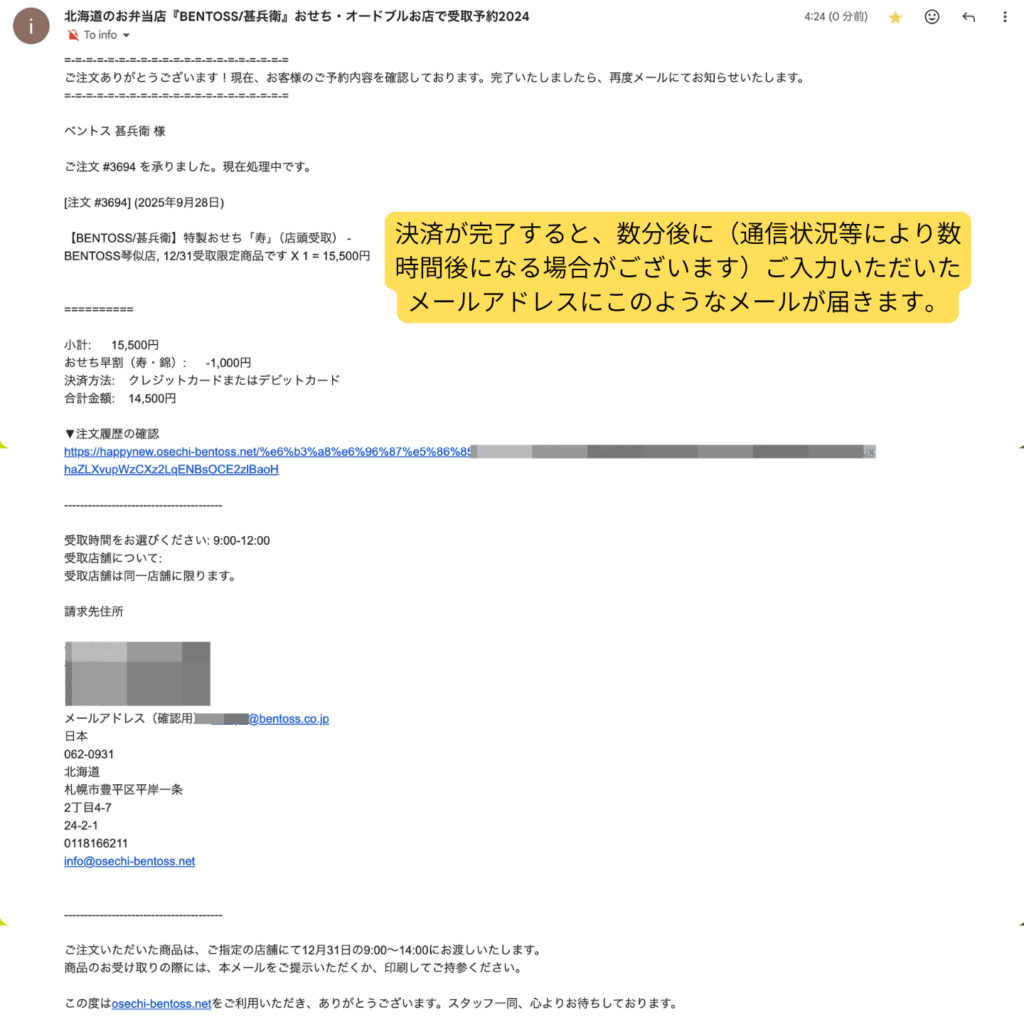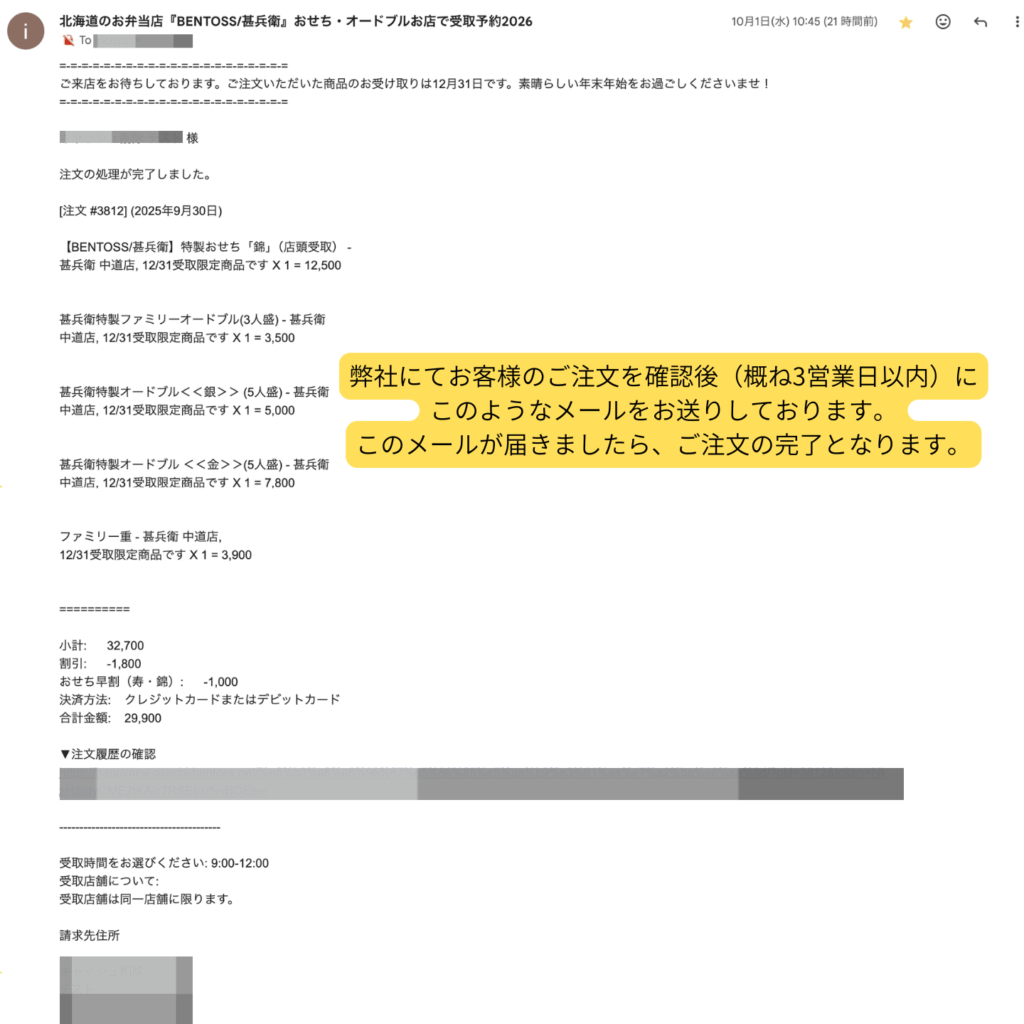 3. ご注文の処理が完了しましたら、「確認完了メール(ご注文控えメール)」が届きます。