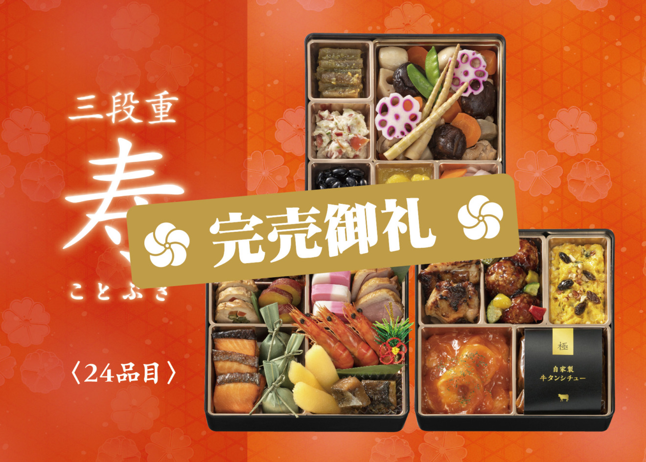 今年のおせち・お重商品・オードブルは完売いたしました。