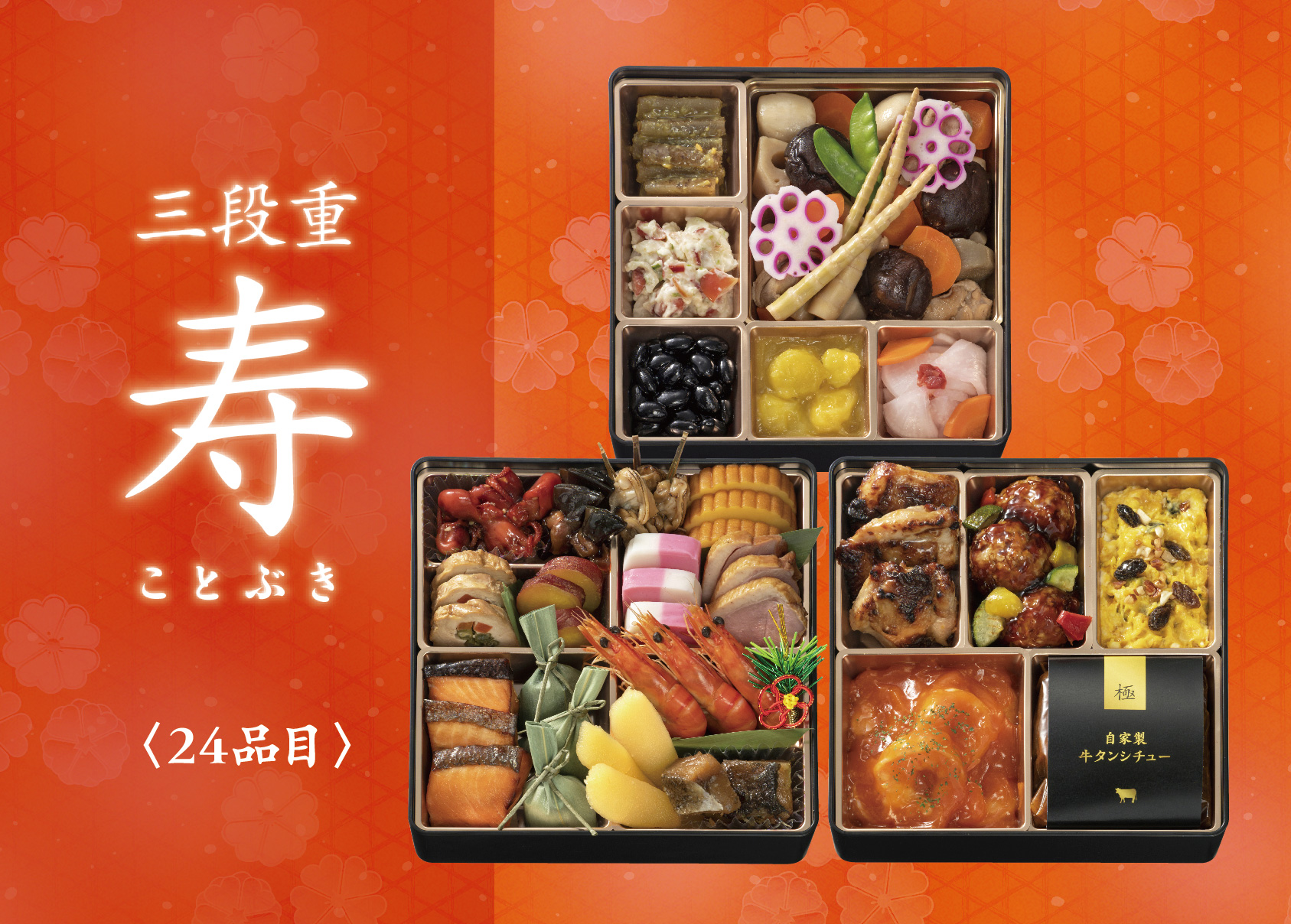 お正月定番の味からお弁当店こだわりのお料理まで、ベントス・甚兵衛ならではの美味しさが詰まった、幅広い世代に支持されている毎年人気No.1のおせちです。