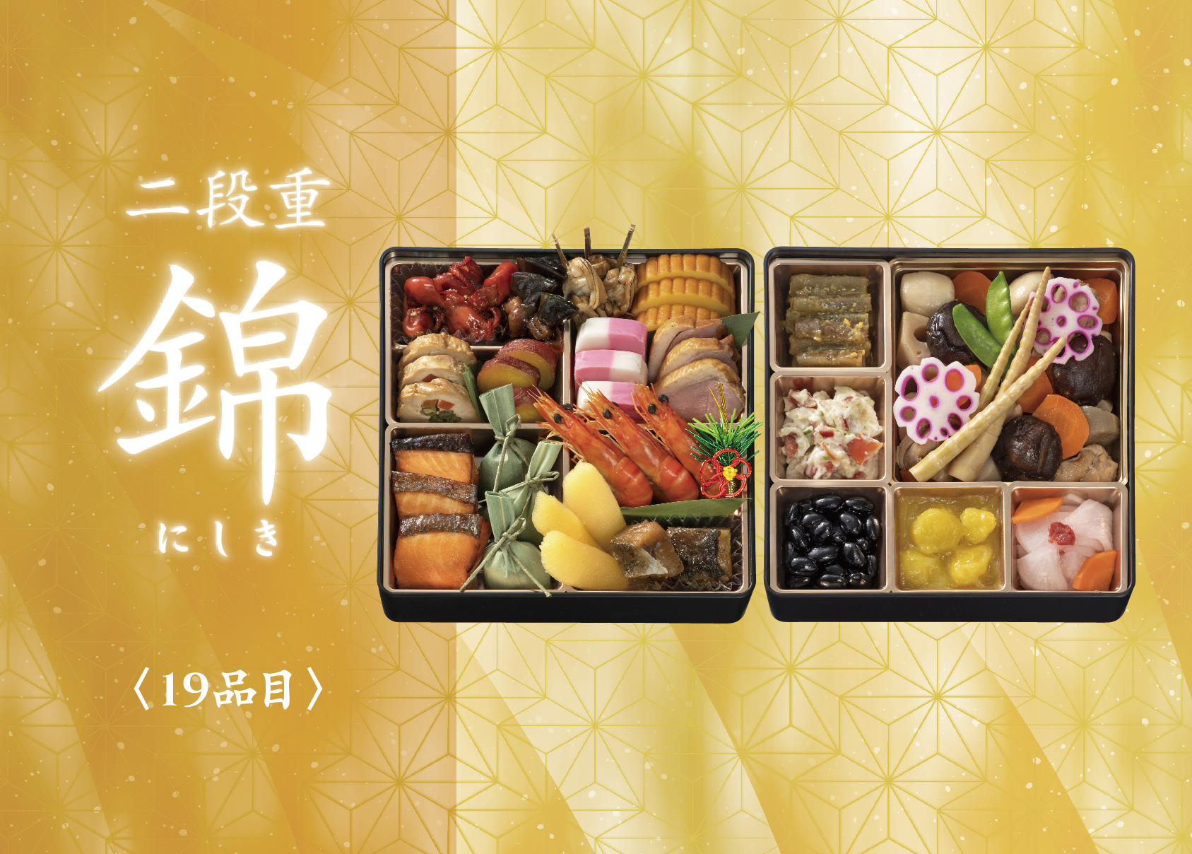 ご夫婦や少人数でも最後まで美味しく楽しめる二段重。お正月のお料理をバランス良く組み合わせました。
